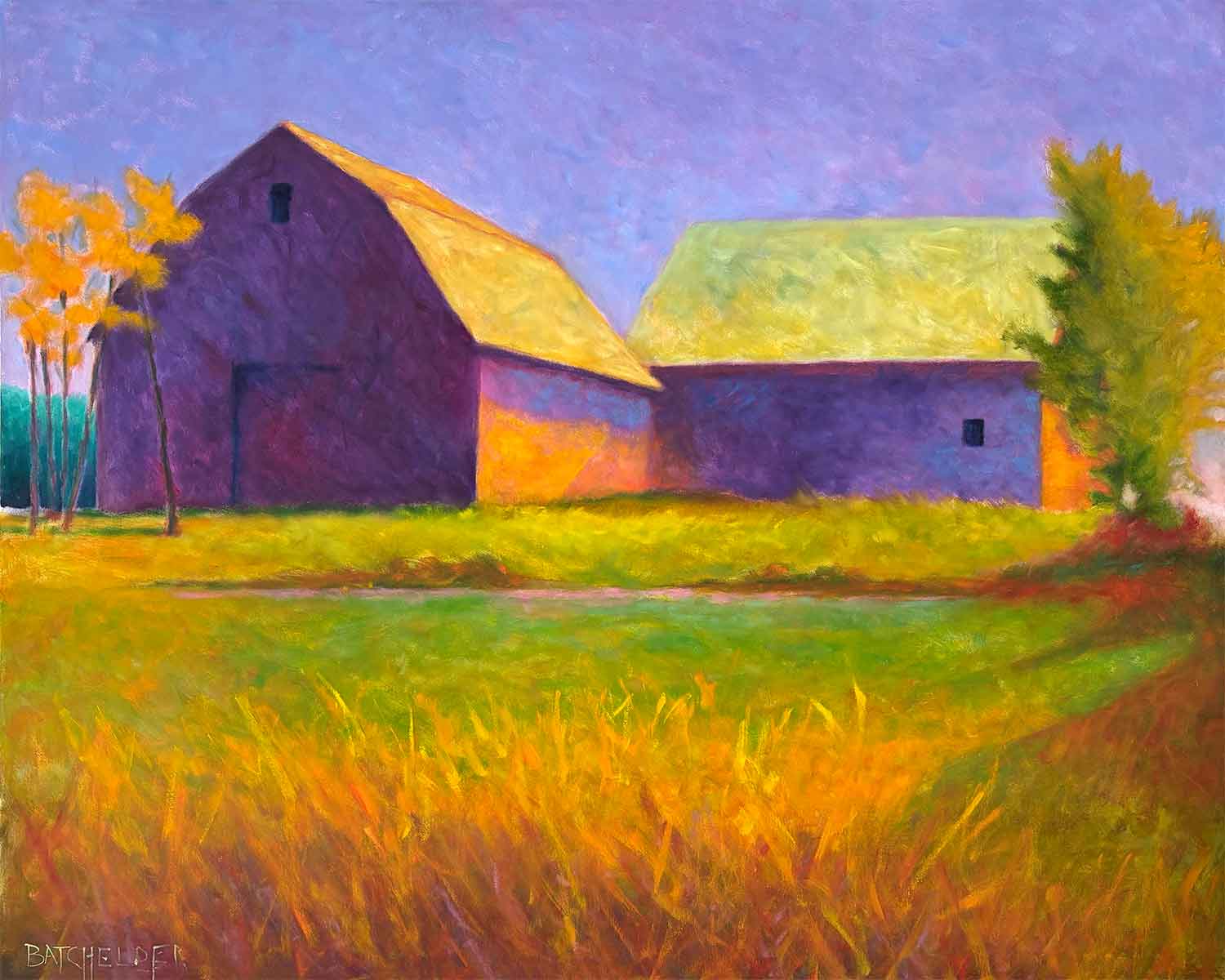 This old barn down the road from here, is all that’s left of an old farm that sat, with it’s old dormered farmhouse, for decades on hundreds of acres of meadows and woods. The farmhouse was torn down, and the land has been subdivided. New houses are popping up regularly. Despite being repainted from it’s original red, to a new deep woodsy green, this old barn looks the same is it must have for a century of winters. “Snowfall” 36 x 36 o/c.