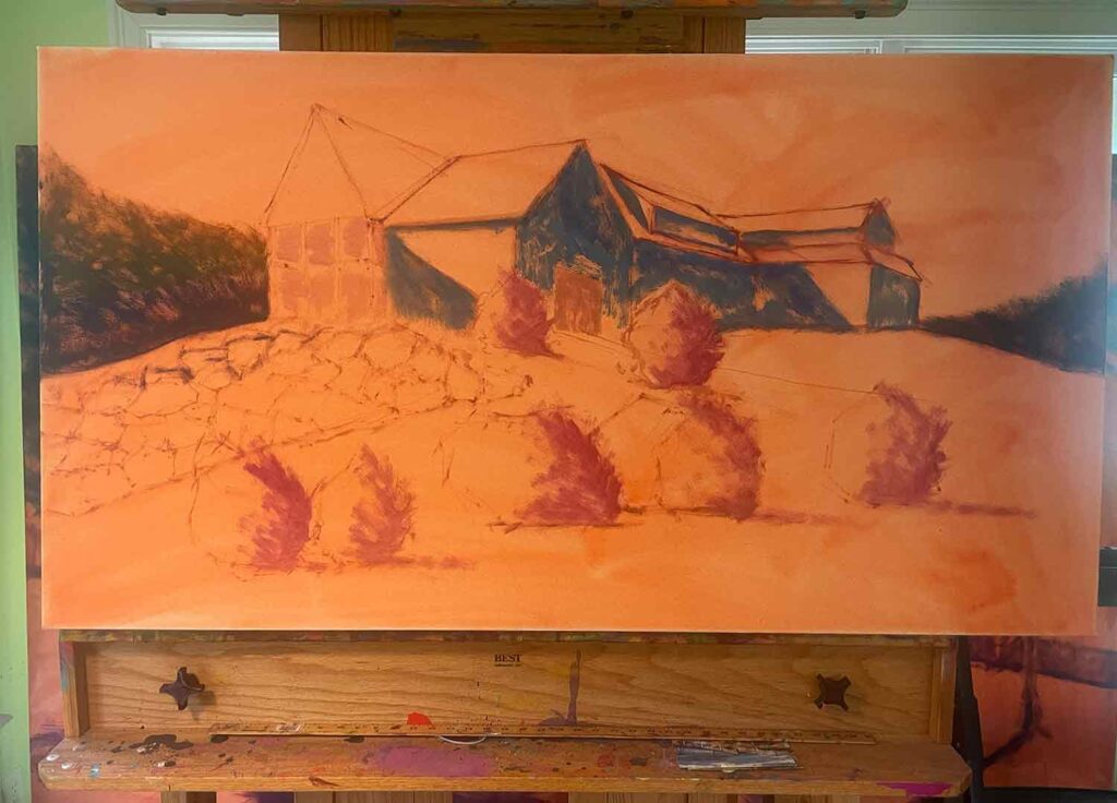 Composition roughed onto canvas.